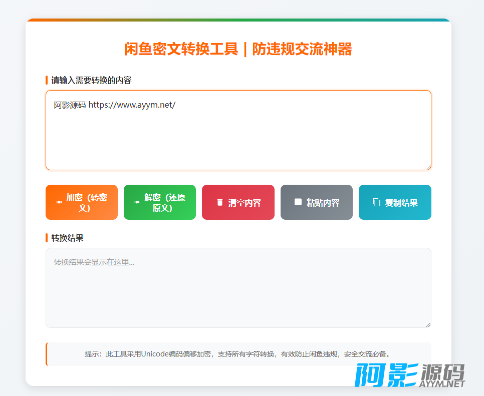 这个工具是为闲鱼用户量身打造的防违规交流神器,核心作用就是把容易触发平台检测的敏感内容,转换成平台识别不出的密文,从而实现安全沟通。 核心价值1. 防违规,避免账号风险 场景痛点:在闲鱼直接发微信...
