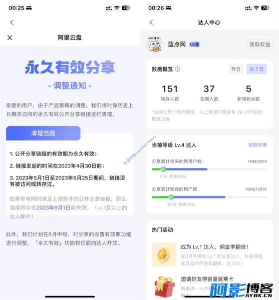 蓝点网目前使用阿里云盘作为备用分享一些资源,也确实有用户通过阿里云盘提取文件所以还有达人的身份。所以蓝点网文章里的资源链接倒是不用挨个修改,当然经过网盘大战后我也考虑过会出现资源全部失效情况。
