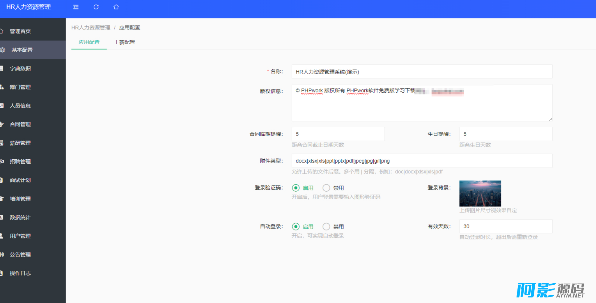 非常全面的一款HR人力资源系统,后台可以管理合同、薪资、员工、部门、招聘、面试、培训、数据统计等等