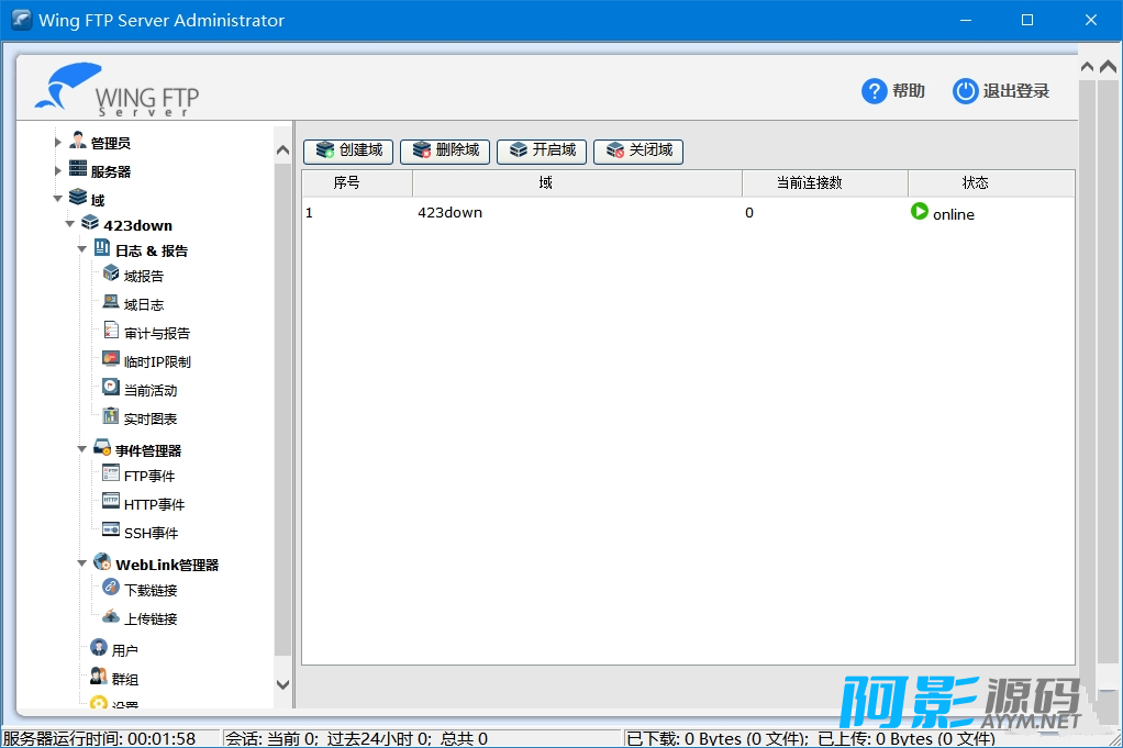 Wing FTP Server是一款跨平台的专业FTP服务器软件, 支持可扩展处理器架构采用异步IO处理, 在速度和效率方面领先于其他同类产品. 它在高负载的情况下也能持续地正常运行, 非常适合企业文件传输. 通过基于Web管理端, 何时何地都能轻松管理远程的服务器. 除了基本功能外, 它支持HTTP/SFTP文件传输, 可编程的事件, 计划任务, Lua脚本扩展, 虚拟文件夹, 磁盘容量分配, ODBC/Mysql存储, 活动目录/LDAP验证等特性。