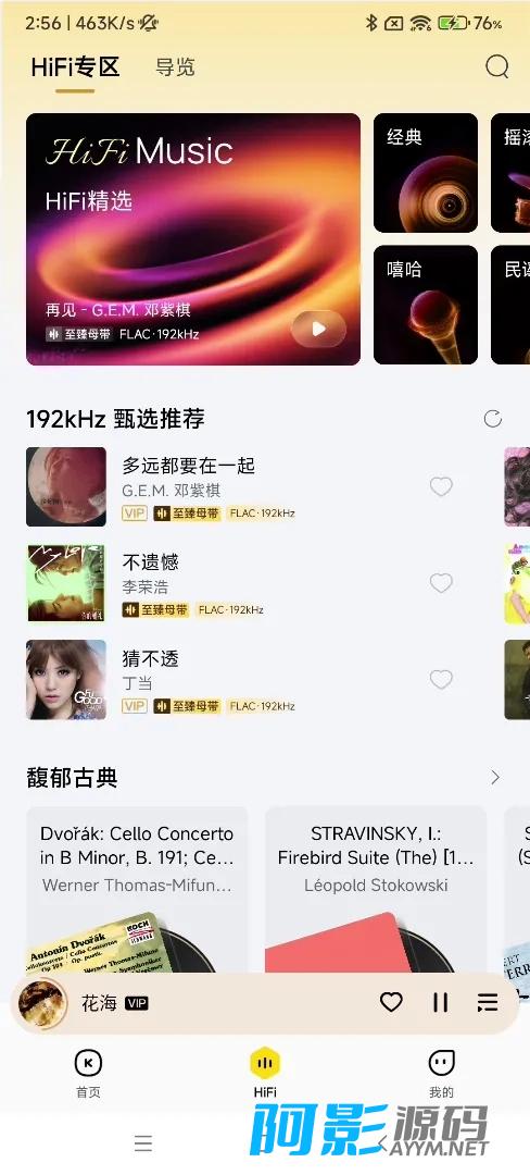 全新HiFi专区:12.0版本新增HiFi专区,联合DG、DECCA等顶级厂牌,精心整理大师典藏与古典爵士歌单,高音质内容触手可及。